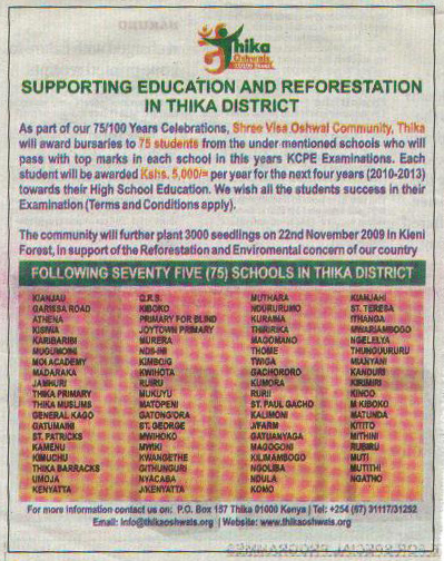 Mr. Motichand Hansraj Dodhia's inspiring speech during Shree Visa Oshwal Community, Thika's 75/100 years historic celebration on Saturday, 12th December, 2009.