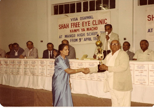 Dr. Somchand K. Savla was contacted in India and he led a team of four doctors and two nurses to give their voluntary services to the camp and since then Dr. Somchand K. Savla has led the team of doctors for the past 30 years. Screening of patients was done in Nairobi, Nanyuki, Meru, Kisumu, Embu, Eldoret, Kitale, Kajiado, Muranga, Nakuru and Thika with the help of the respective Visa Oshwal Centres. After the first camp was over, an Oshwal Seminar was held in Thika to discuss the future of Shah Free Eye Camp. After a lot of discussion it was decided to take this project under the banner of Shree Jain Youth League.